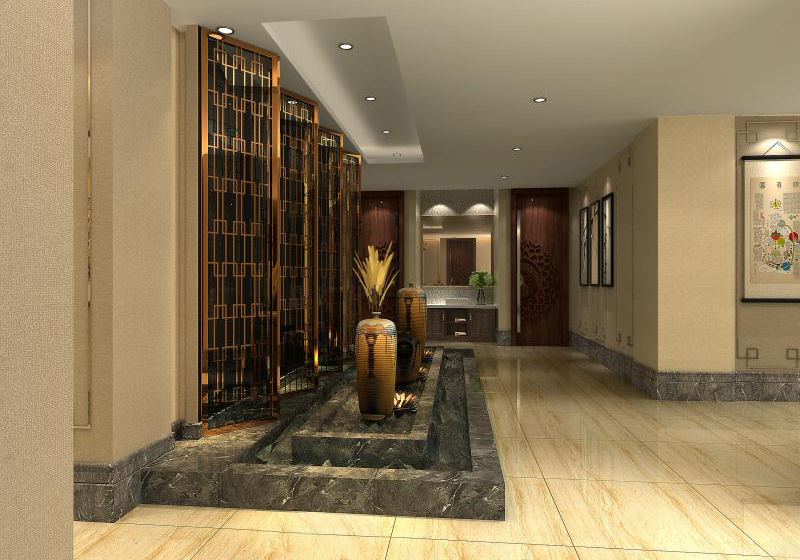 設(shè)計(jì)理念: 公司為企業(yè)做的辦公室裝修設(shè)計(jì),整體以暖色調(diào)為主,燈光顏色的選用和地板的使用起到了與之相互照應(yīng)的作用,更襯托出整個(gè)辦公空間的暖色調(diào)。在顏色方面整體選取暗色調(diào),給人以莊重嚴(yán)肅之感。在燈的裝飾上以及天花的花紋上又看出了中國式的風(fēng)格。