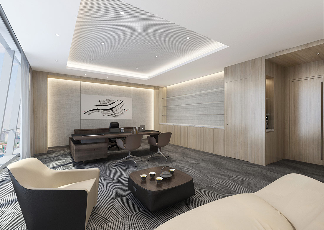 設計理念: 大型辦公室裝修效果圖展現了一個集于現代、高效和舒適融為一體的辦公環境。辦公室裝修設計時利用了大面積的特點將開放式辦公區域與會議室等其他區域巧妙的融合到了極致,既保證了團隊間的緊密合作,也兼顧了員工們的休閑辦公。使用落地窗進行搭配,讓整個辦公室顯得更加明亮整潔。辦公室整體采用了大面積化設計,讓客戶進門后感覺到豪放、大氣、高端。利用高效的照明系統與通風系統能夠確保室內光線的充足與空氣流通。
